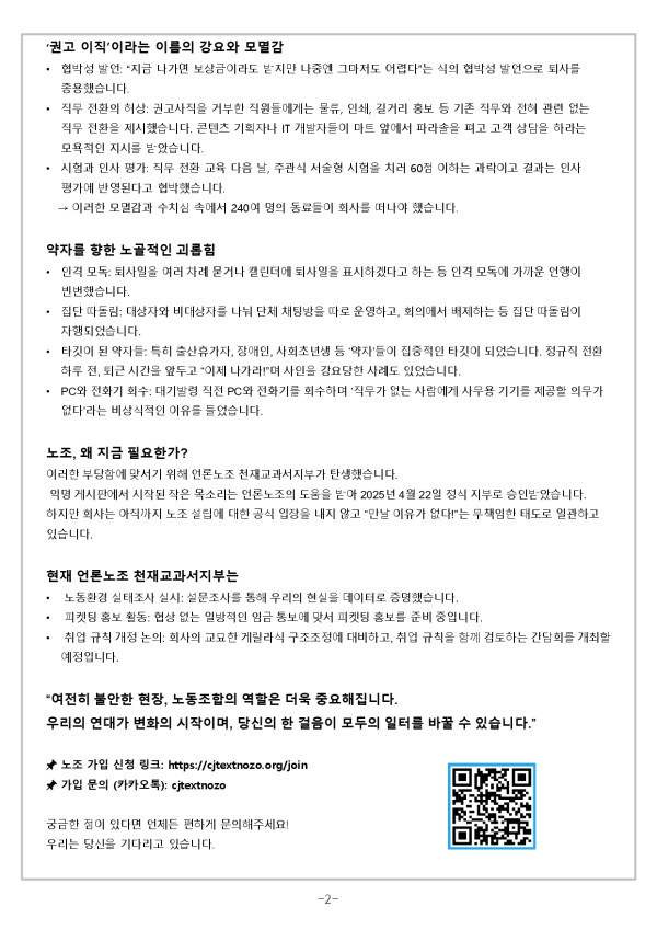 안녕하세요. 전국언론노동조합 천재교과서지부입니다.