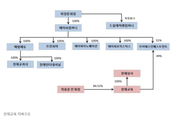 ◇'최정민 회장→에이피컴퍼니→해법에듀·프린피아 등' 지배구조